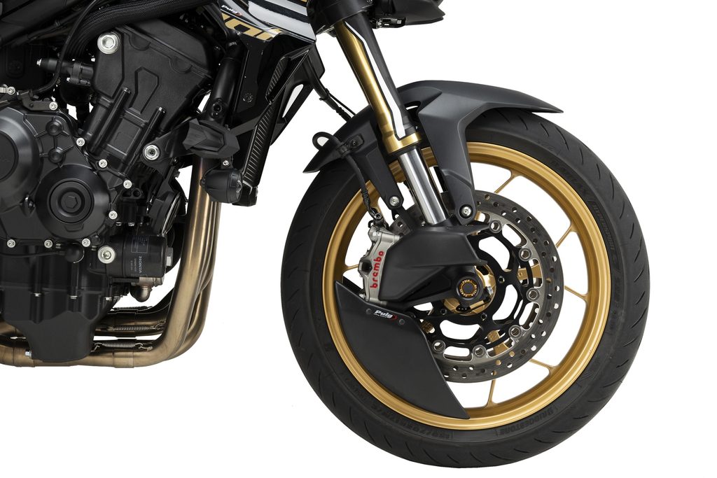Jeho hlavní funkcí je snížit turbulence kolem předního kola, čímž poskytuje větší stabilitu a přesnost, zejména při vysokých rychlostech nebo náročných jízdních podmínkách. Díky tomuto efektu nabízí motocykl předvídatelnější ovládání a vyšší komfort jezdce.