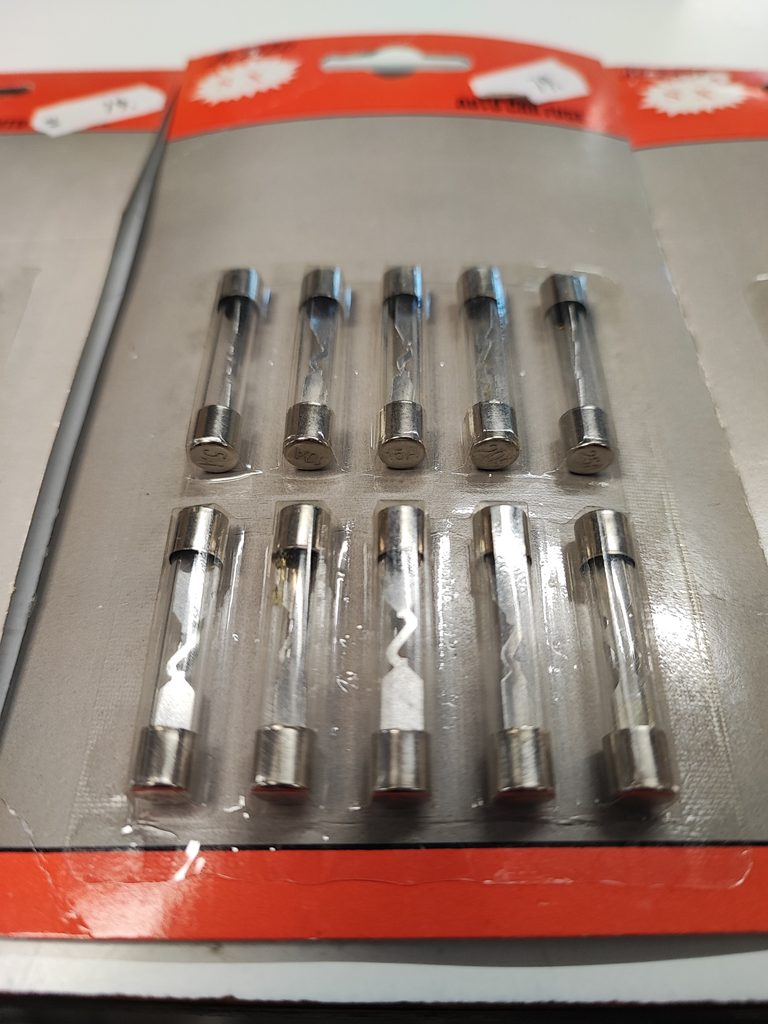 Skleněné pojistky. Šířka 32 mm. Maximální napětí 32V. Skleněné pojistky se nejčastěji používají v elektronických zařízeních. Chrání před zkratem