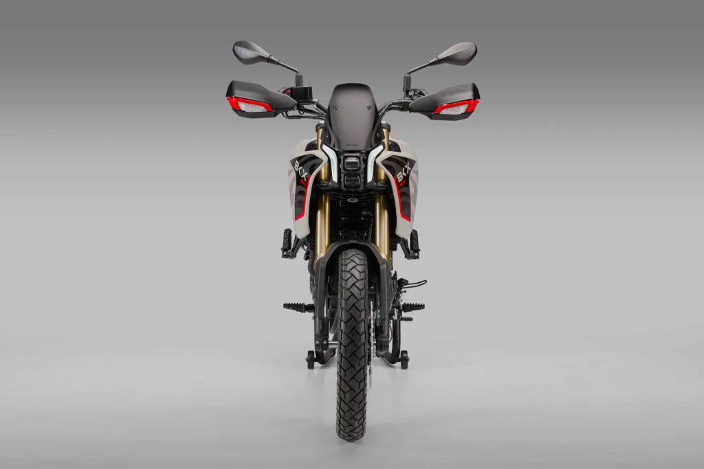 BKX 300 je novým adventure motocyklem od Benelli, který je určen mladší generaci jezdců. Motocykl navržený pro ty, kteří chtějí svobodně cestovat a objevovat nové cesty. Univerzální dvoukolka, lehká a snadno ovladatelná, vytvořená tak, aby zajistila optimální ovladatelnost za všech podmínek a přinesla zábavu jak na asfaltu, tak v terénu. Ideální volba pro začátečníky toužící po dobrodružství, ale také pro ty, kteří si chtějí užít jízdu na kompaktním, dynamickém a moderně stylizovaném motocyklu.