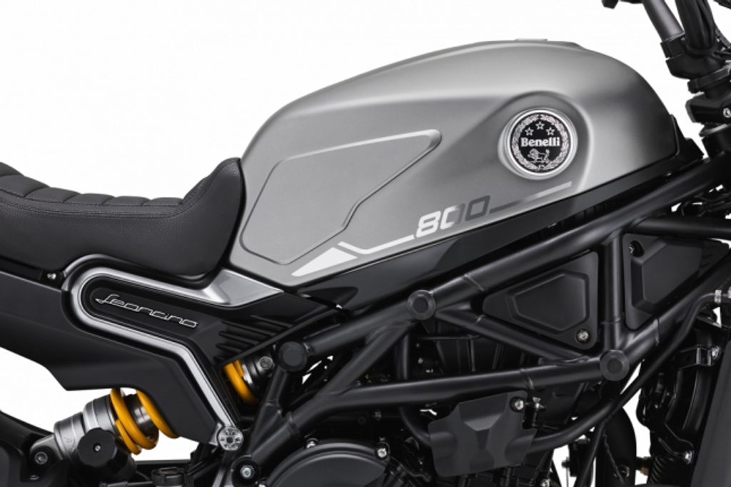 Péče o detaily a originální materiály jsou charakteristickými znaky Benelli Leoncino 800. Šikmá a moderně vyhlížející nádrž je vyrobena z oceli a nese logo Benelli, jak velí tradice. Nádrž má pozoruhodnou kapacitu 15 l a podtrhuje svalnatost tohoto motocyklu.