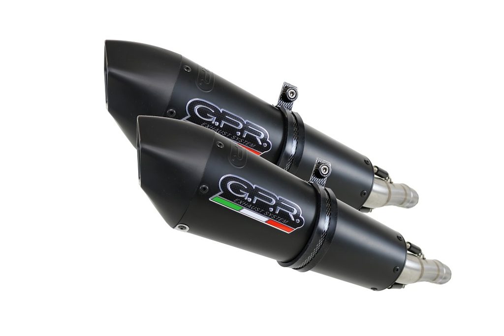 Dvojitá koncovka výfuku Slip-on GPR GPE ANN. K.158.E4.GPAN.BLT Titanová matná černá zahrnuje odnímatelné dB killery a spojovací svody