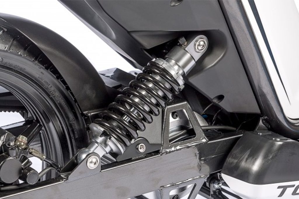 Když jsme navrhovali skútr MUVI, kladli jsme největší důraz na jeho hmotnost. Vyvinuli jsme pevný, přesto lehký rám, který jsme navíc osadili inovativním zadním odpružením. Společně s přední vidlicí nabízí skútr MUVI obdivuhodnou agilitu a lehkost ovládání. K tomu máte navíc stále dostupný výkon 3 kW.
