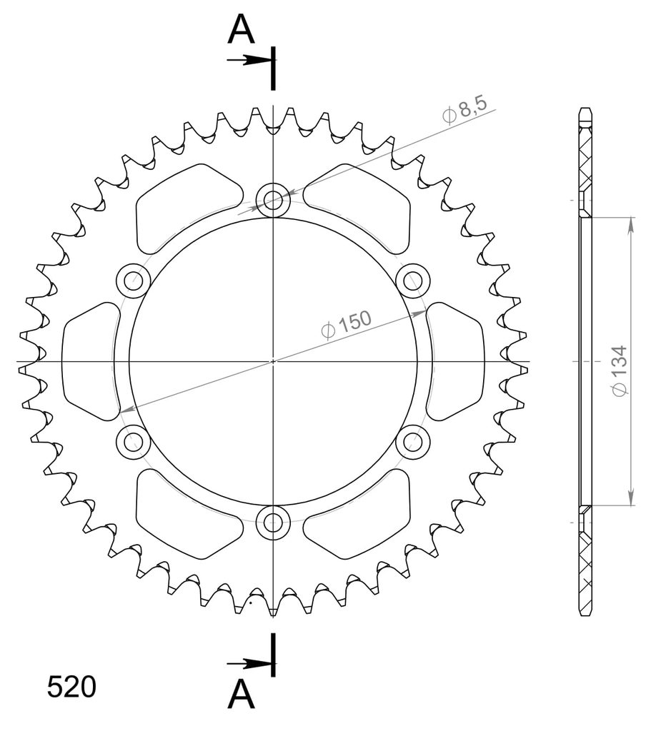 Hliníková řetězová rozeta SUPERSPROX RAL-460:45-BLK černý 45 zubů, 520