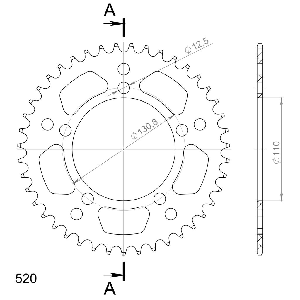 Hliníková řetězová rozeta SUPERSPROX RAL-7_520:43-BLK černý 43 zubů, 520
