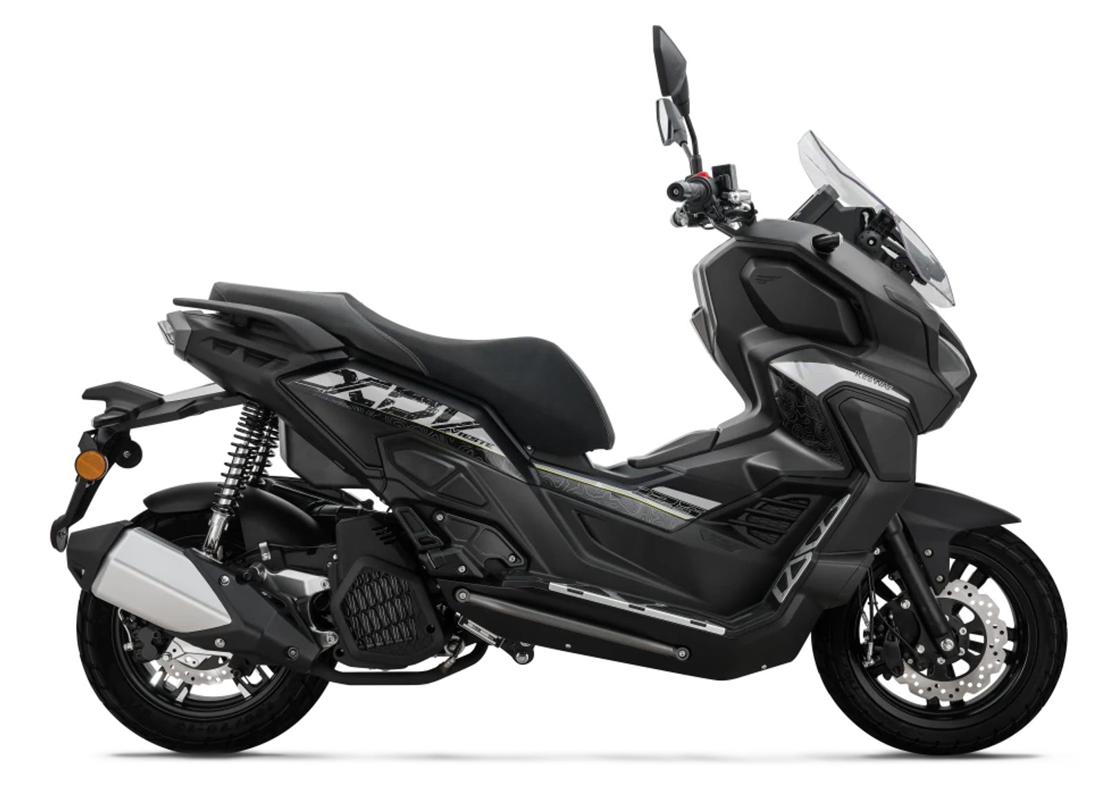 Přesahuje průměrné skútry a díky hrubším pneumatikám a citlivému odpružení snadno překoná rozmanitý terén ve městě i daleko za jeho hranicemi.
