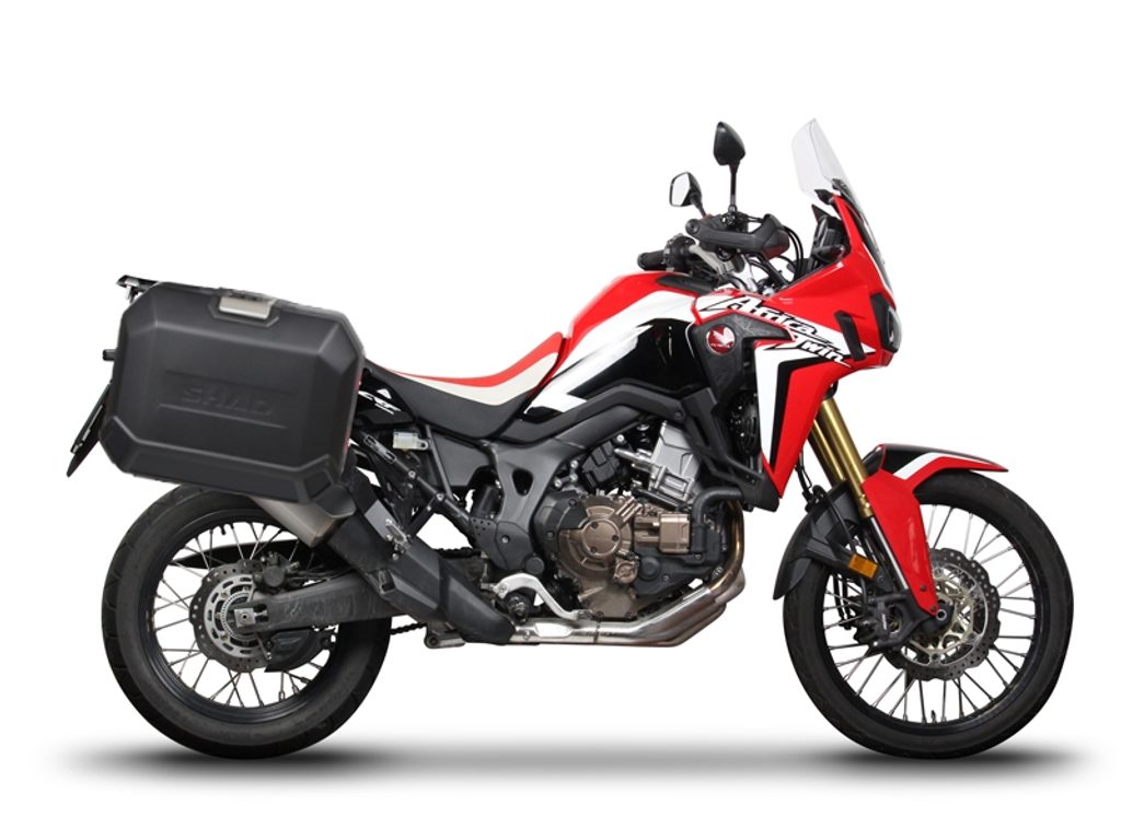 Kompletní sada bočních černých hliníkových kufrů SHAD TERRA BLACK 36L/47L, včetně montážní sady SHAD HONDA CRF 1000 Africa Twin