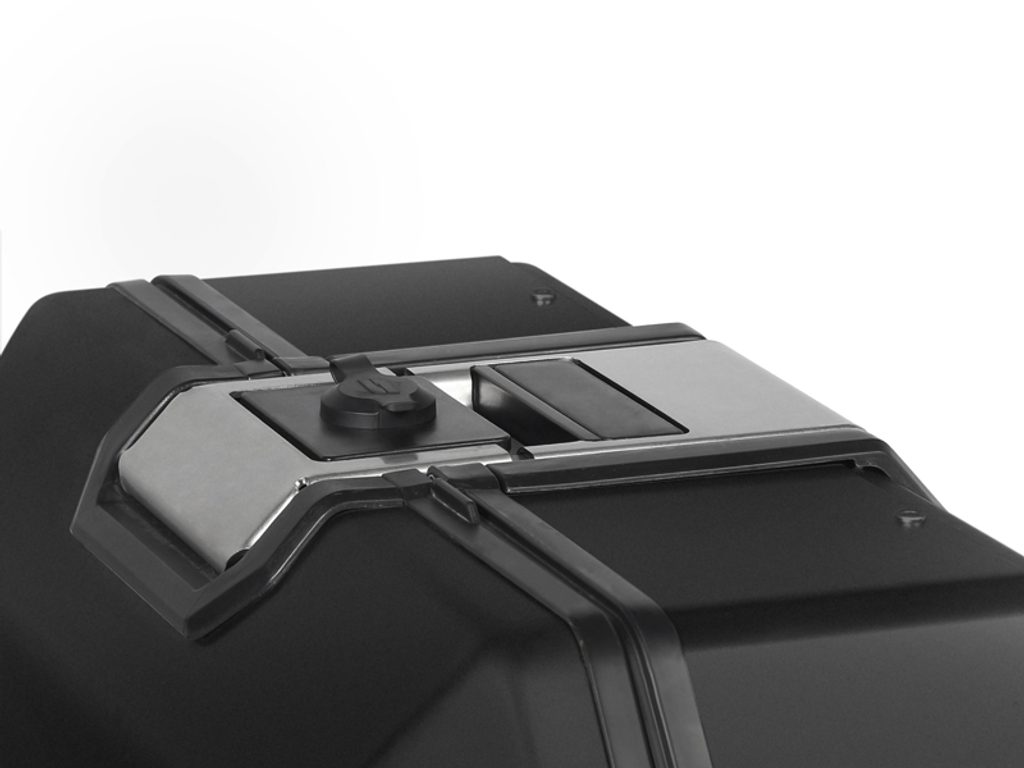 Unikátní integrovaný mechanismus zámku a madla umožňuje jednoduché ovládání jednou rukou a snadnou demontáž z motocyklu.