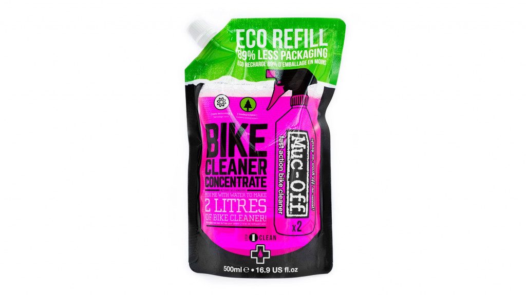 - Spotřebuje o 89 % méně obalů než dvě 1l láhve Muc-Off.