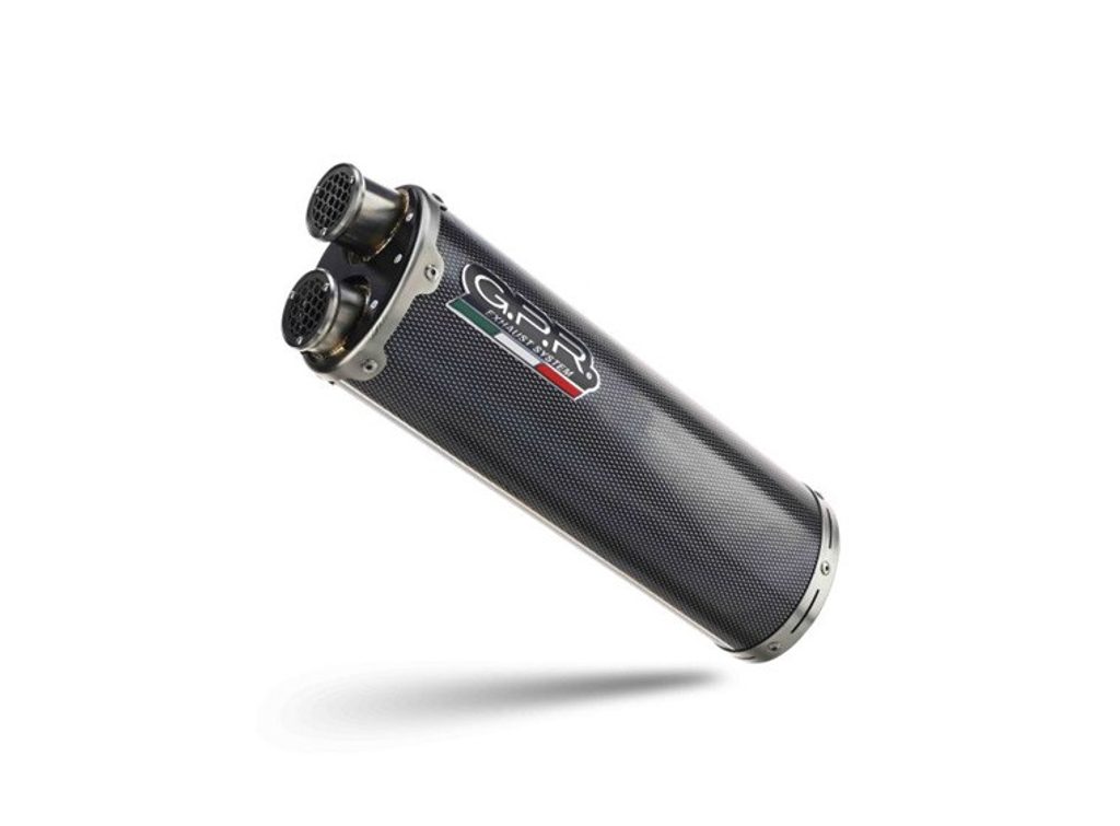 Koncovka výfuku Slip-on GPR DUAL POPPY E5.BM.94.2.DUAL.PO Nerezový karbonový vzhled zahrnuje spojovací svod a odnímatelný dB killer