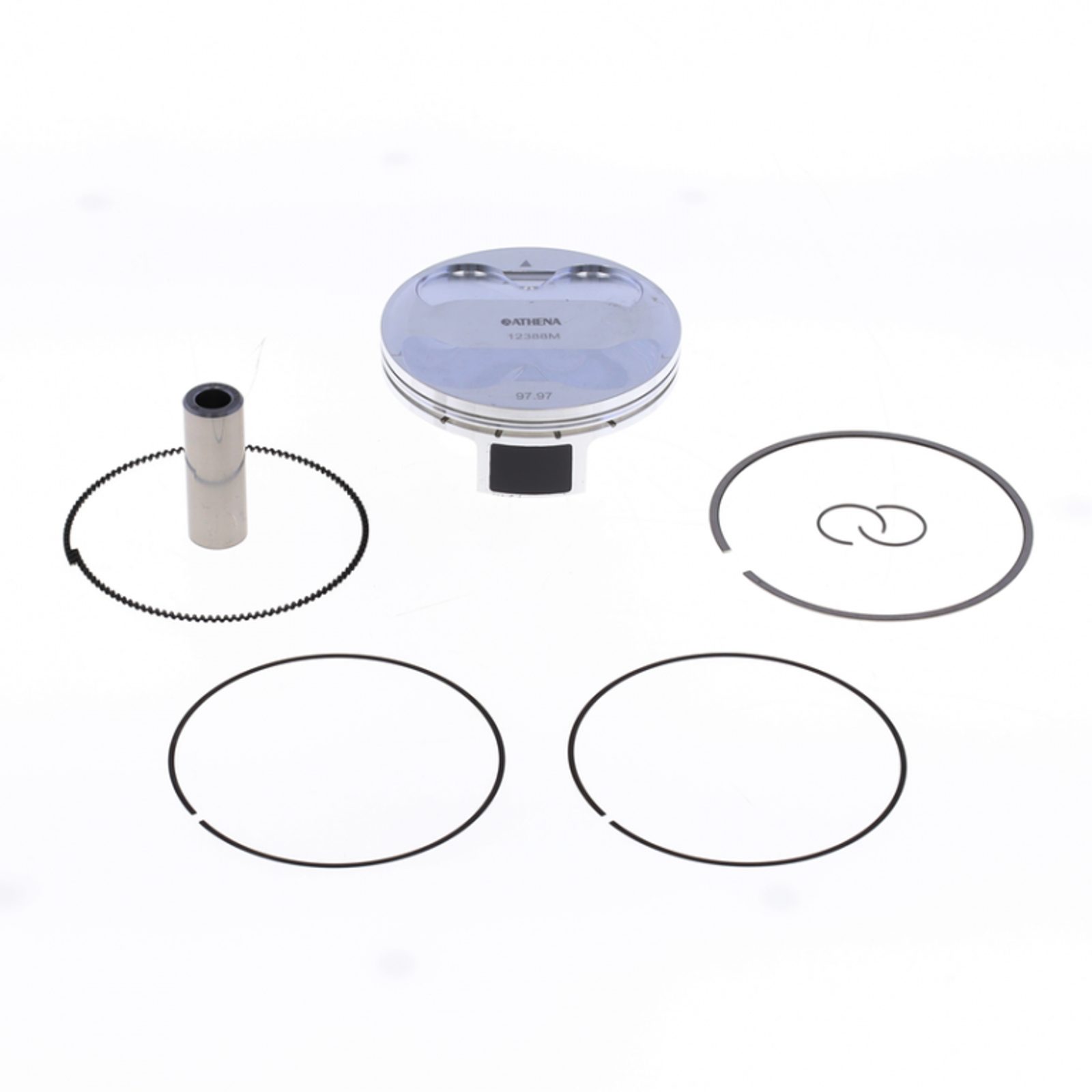 Kovaný píst sada ATHENA S4F09800011A d 97,96mm Kovaný píst vyrobený revoluční počítačem řízenou technologií odvozenou od GP a F1. Vysoký výkon a spolehlivost, dodává se kompletně s kroužky, čepem a
