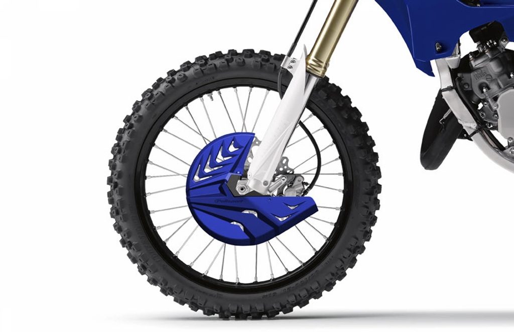 - Kompletní ochrana brzdového kotouče a spoudní části vidlice a částečně i brzdového třmenu