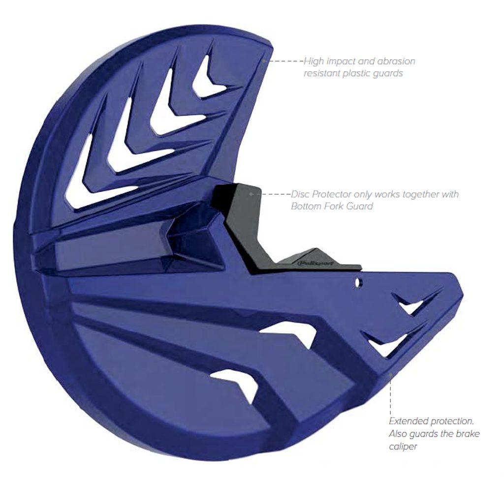- Kompletní ochrana brzdového kotouče a spoudní části vidlice a částečně i brzdového třmenu