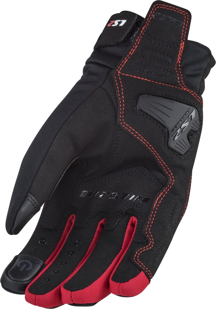LS2 JET 2 MAN GLOVES BLACK RED Celoroční pánské moto rukavice s chrániči kloubů, nepromokavá prodyšná membrána Hipora®, vynikající komfort, předtvarované prsty, silikonový potisk na dlani, prsty s technologií Touchscreen