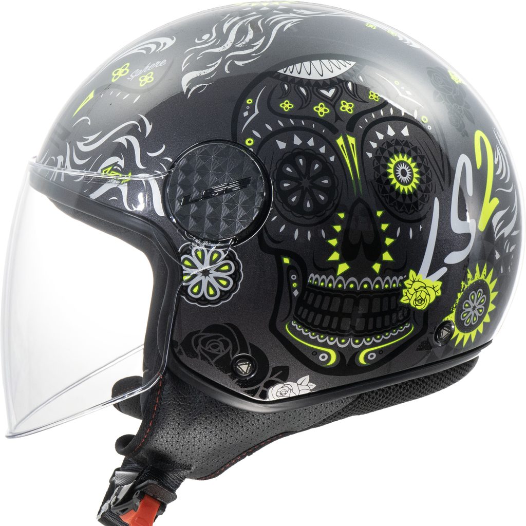 Propracovaná otevřená helma pro skútry, motocykly a čtyřkolky, lehká skořepina z KPA, atraktivní lakování s vysokou viditelností, čiré 3D plexi s úpravou proti poškrábání, antialergický hygienický plně vyjímatelný a pratelný interiér, zapínání rychlopřezkou, 1000g