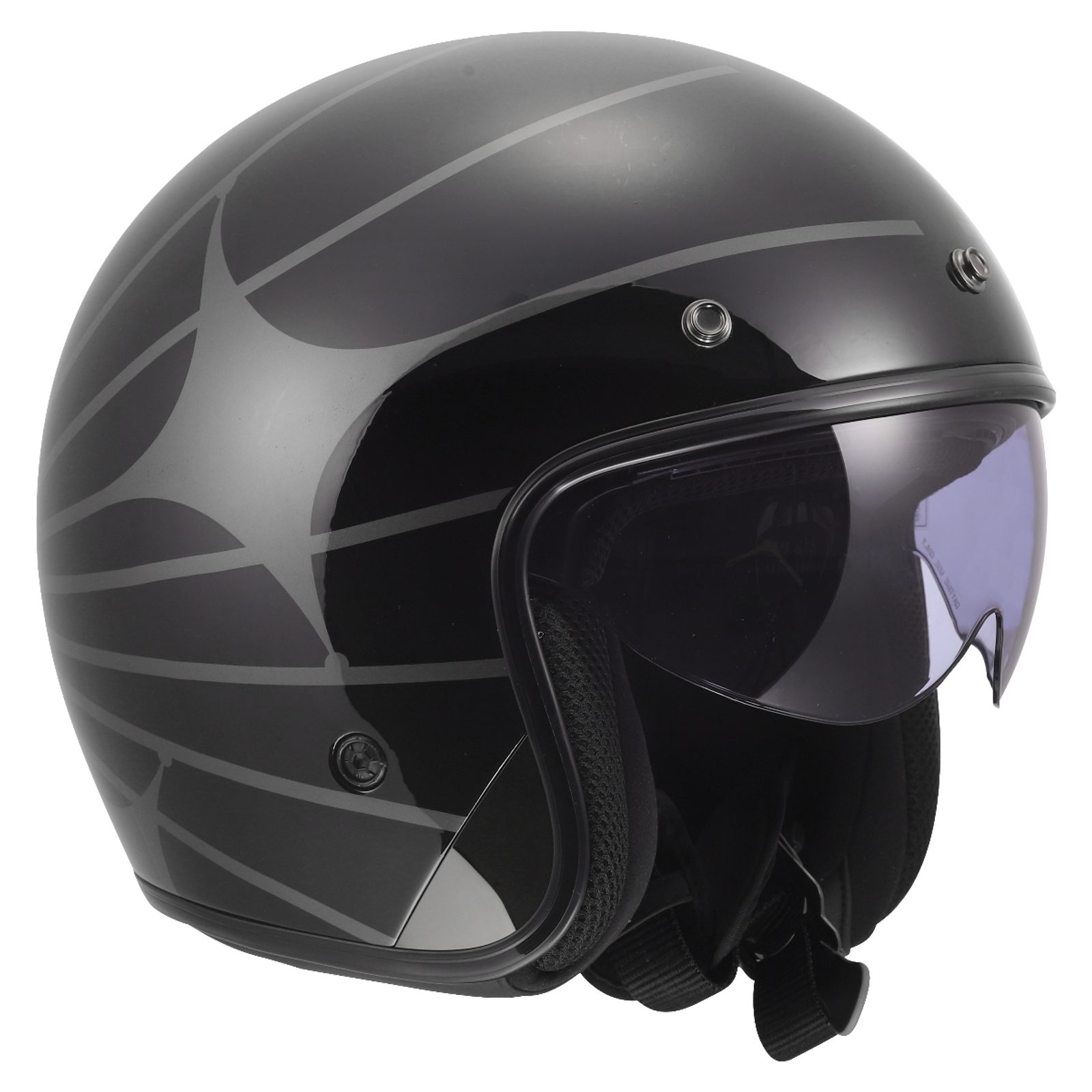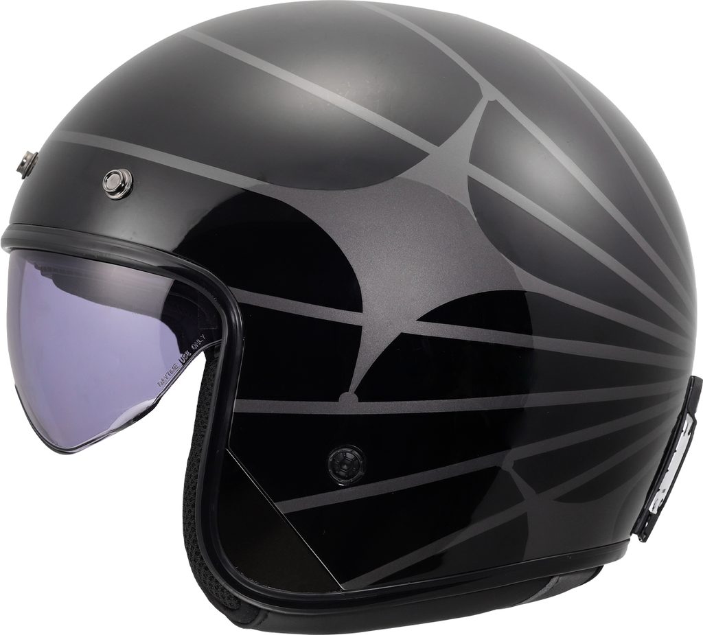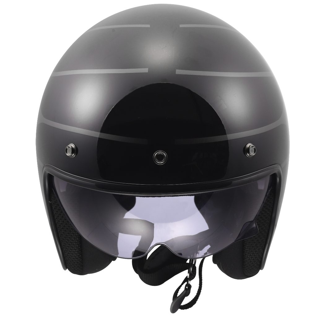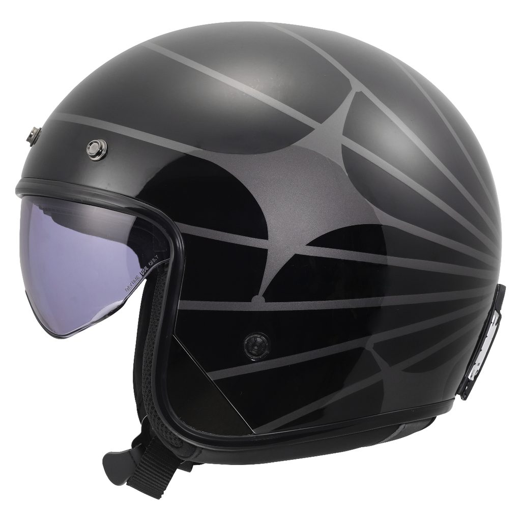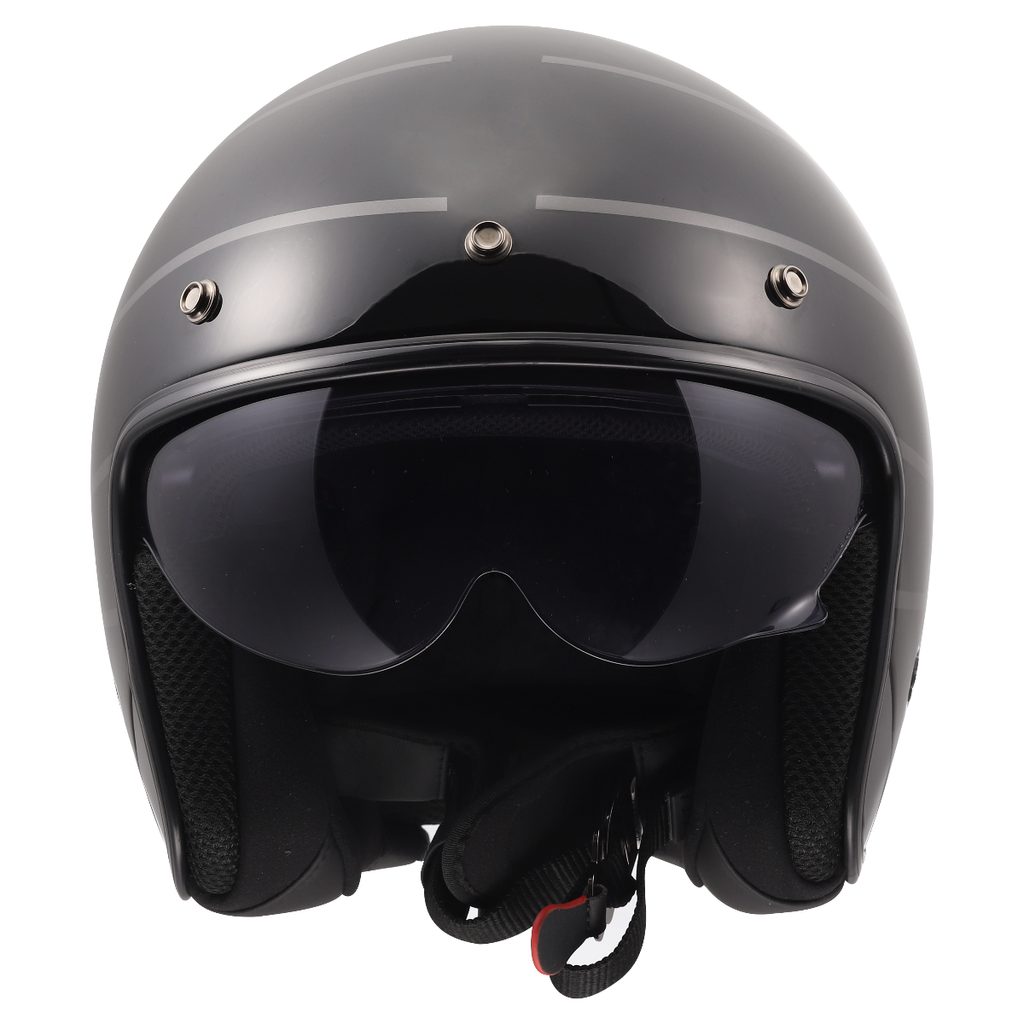Exkluzivní lehká helma v atraktivním neo-retro stylu, vysouvací sluneční clona, HPFC skořepina, snadno odnímatelný sluneční štítek, komfortní antibakteriální kompletně vyjímatelný a pratelný interiér, zapínání dvojitými D-kroužky, hmotnost 1000g