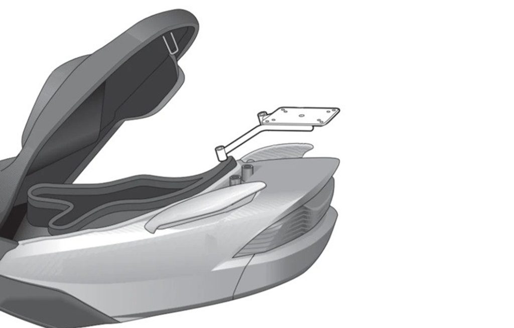 K upevnění vrchního kufru SHAD na motorku stačí namontovat tuto montážní sadu, plotna je vždy součástí kufru (kromě kufrů TR48/TR37).