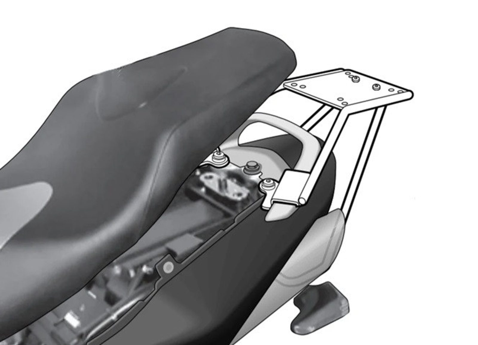 K upevnění vrchního kufru SHAD na motorku stačí namontovat tuto montážní sadu, plotna je vždy součástí kufru (kromě kufrů TR48/TR37).