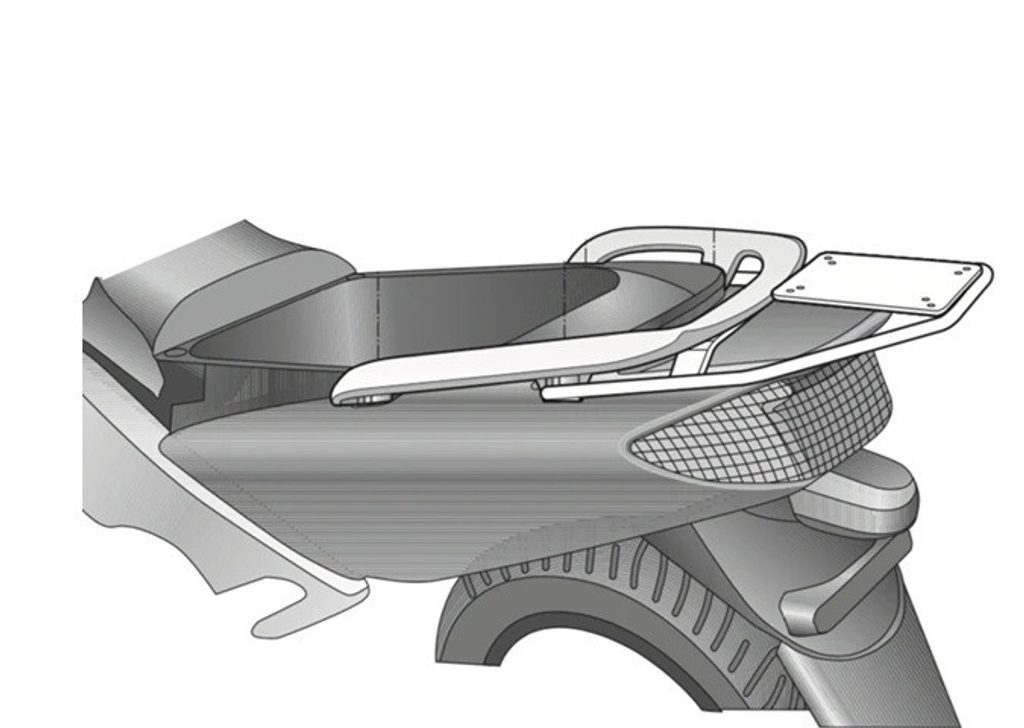 K upevnění vrchního kufru SHAD na motorku stačí namontovat tuto montážní sadu, plotna je vždy součástí kufru (kromě kufrů TR48/TR37).