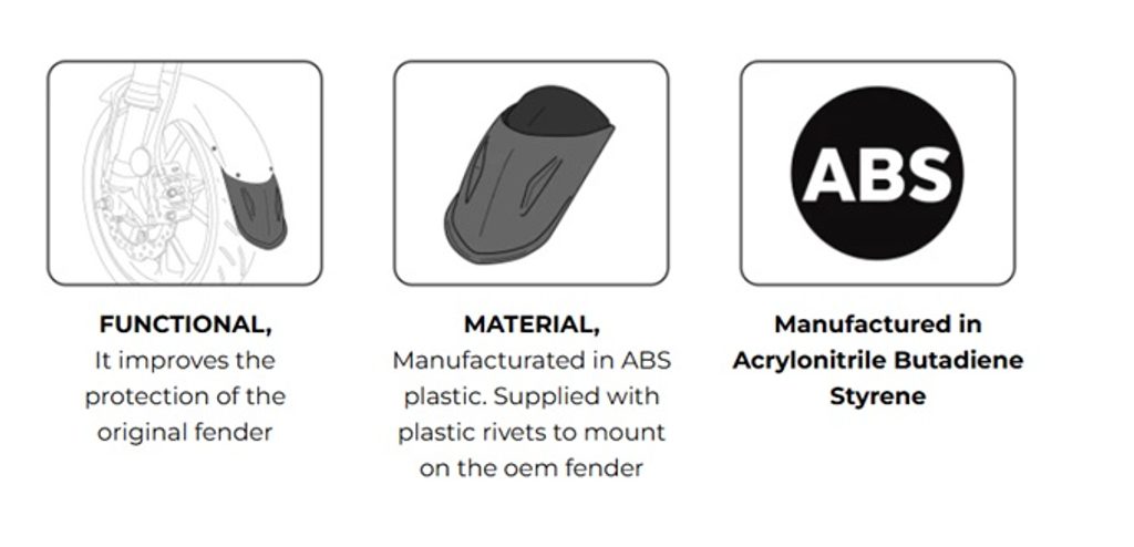 Zajistěte svému motocyklu lepší ochranu pomocí prodloužení předního blatníku od společnosti PUIG. Prodloužení je vyrobeno z materiálu ABS, který je vysoce odolný proti nárazům, a představuje ideální ochranu proti nečistotám odletujícím od předního kola, které by mohly zasáhnout kapotáž motocyklu nebo přímo vás. Prodloužení je dodáváno v černém provedení, aby dokonale ladilo s designem vašeho motocyklu.