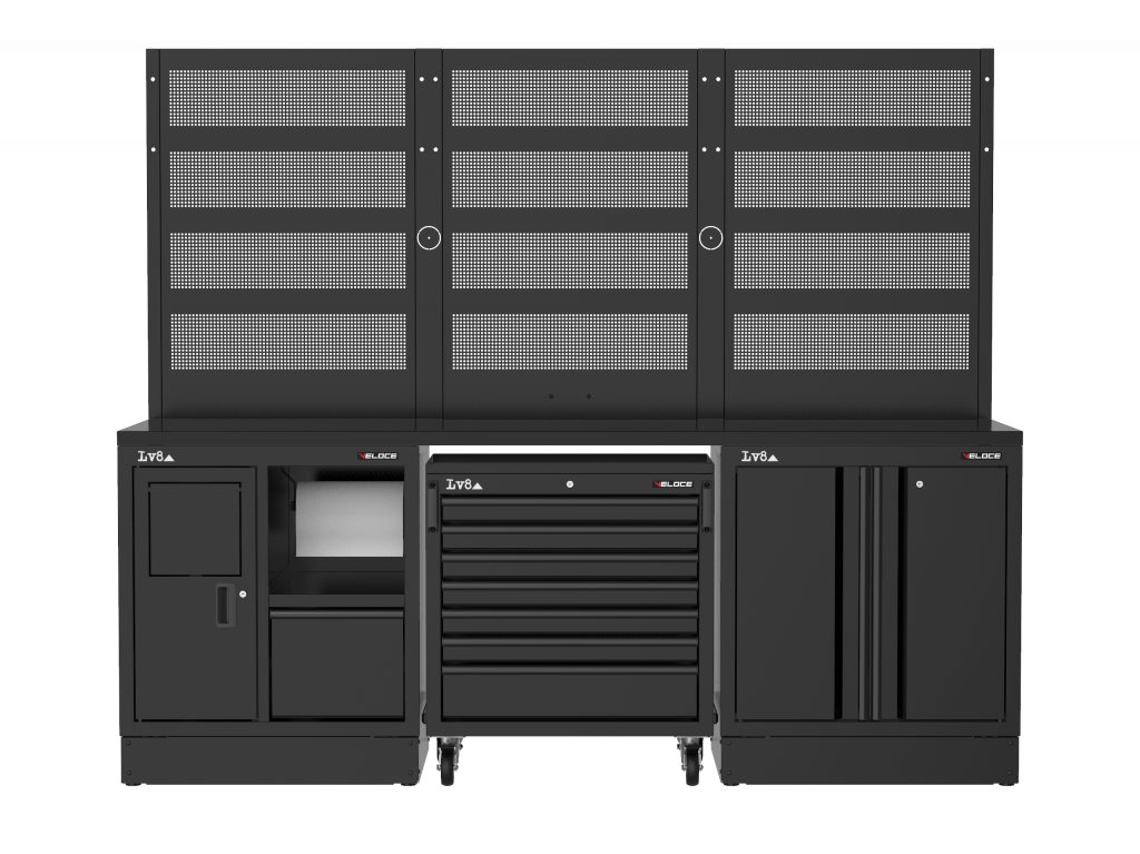 • 3 perforované panely na zavěšení nářadí