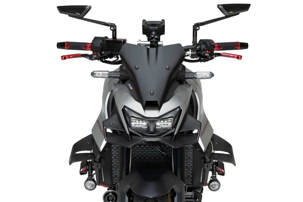 Z hlediska aerodynamiky nový přední spoiler Naked od Puig usměrňuje vzduch, který přichází čelně k chladiči, a díky svým tvarům poskytuje téměř 2 kg přítlaku na přední kolo, čímž zároveň vytváří efekt proti zdvihání předního kola (anti-wheelie), efekt proti vibracím řídítek při vysokých rychlostech (anti-shimmie), lepší stabilitu při brzdění a větší jistotu při změně směru.