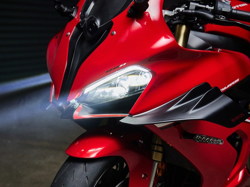 SRK 800 RR je podobně jako ostatní modely QJMOTOR vybaven Full LED osvětlením - počínaje zdvojeným hlavním světlometem, přes blinkry až po výrazné koncové světlo. Design přední masky, denní svícení řešené LED pásky ale hlavně čtyřoký hlavní světlomet vyzařují agresivitu a dodávají výrazný charakter tomuto zcela novému supersportu. Moderní technologie LED osvětlení je nenáročná na údržbu, zajišťuje optimální viditelnost a dokonale osvětlenou vozovku za soumraku i ve tmě.