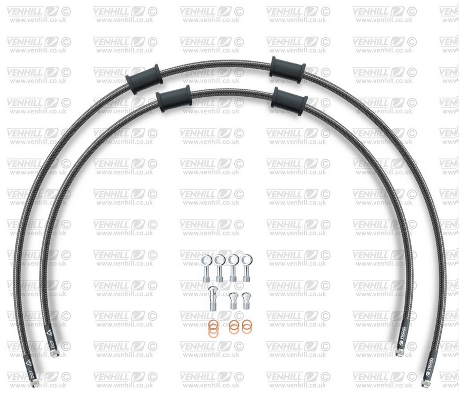 RACE Hadice přední brzdy sada Venhill POWERHOSEPLUS HON-2013F-CB (2 hadice v sadě) karbonové hadice, chromové koncovky
