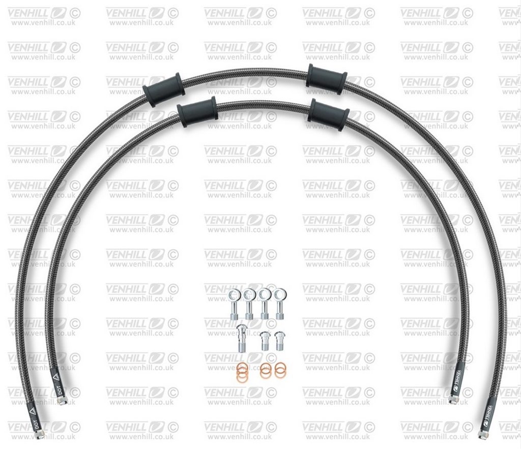 RACE Hadice přední brzdy sada Venhill POWERHOSEPLUS HON-6041F-CB (2 hadice v sadě) karbonové hadice, chromové koncovky