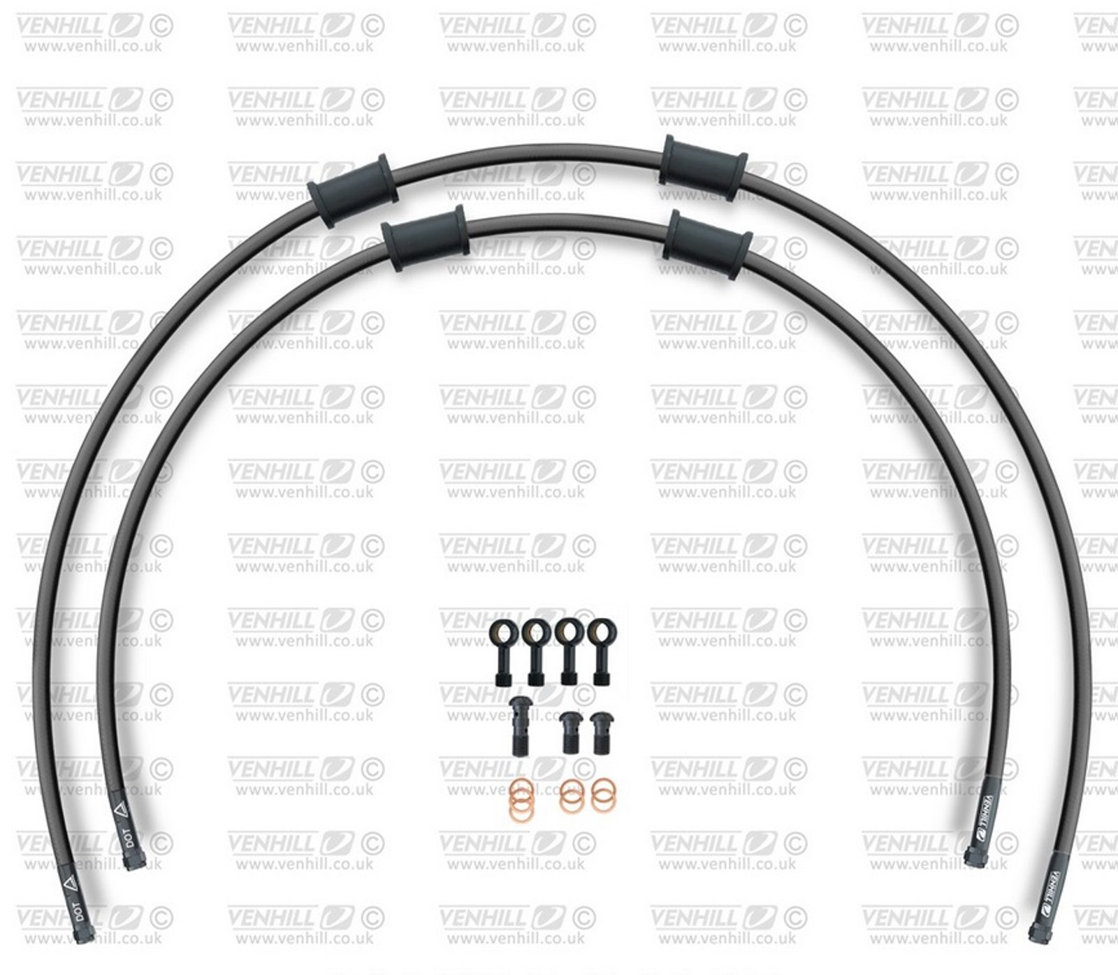 RACE Hadice přední brzdy sada Venhill POWERHOSEPLUS HON-6041FB-BK (2 hadice v sadě) černé hadice, černé koncovky
