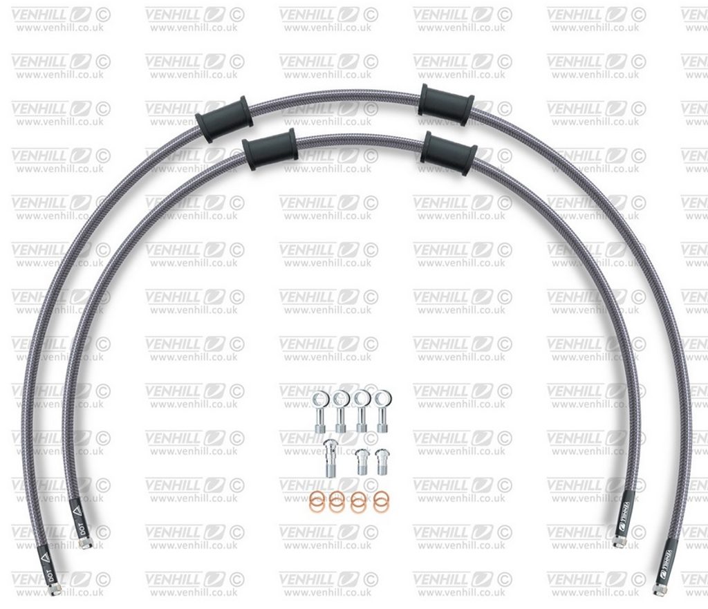 RACE Hadice přední brzdy sada Venhill POWERHOSEPLUS KAW-6021F (2 hadice v sadě) Průhledné hadice, chromové koncovky