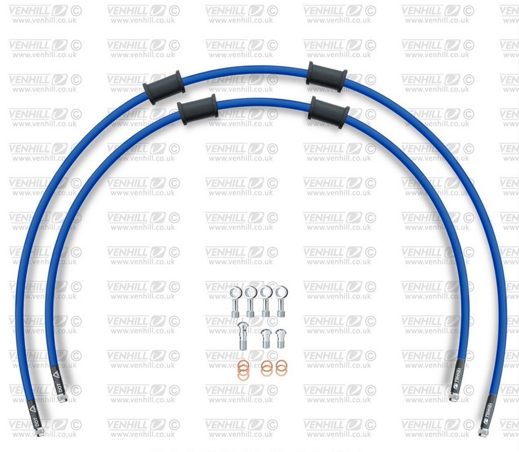 RACE Hadice přední brzdy sada Venhill POWERHOSEPLUS YAM-6029F-SB (2 hadice v sadě) modré hadice, chromové koncovky
