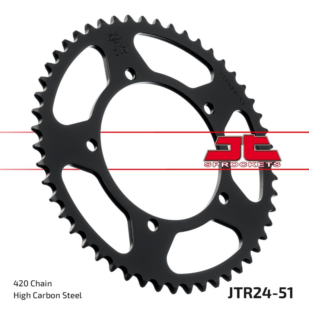 JT rozety jsou vyráběny z prvotřídní vysokopevnostní uhlíkové oceli C49. Sortiment ocelových rozet JT aktuálně čítá více než 2 500 dílů pro motocykly a čtyřkolky všech značek.
