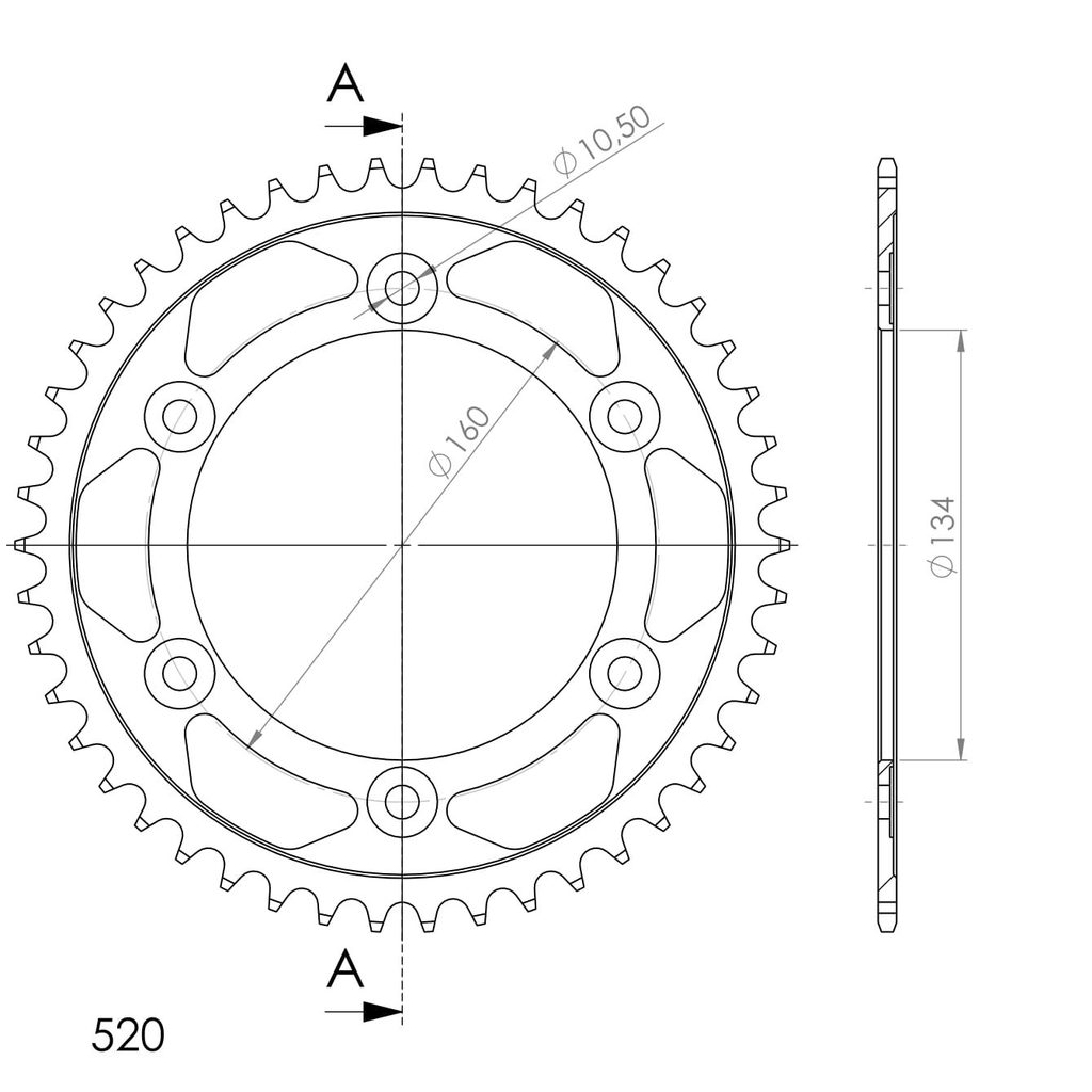 Pevnější zuby = vyšší životnost řetězové sady až o 10%. Rozeta 46z, řetěz 520.