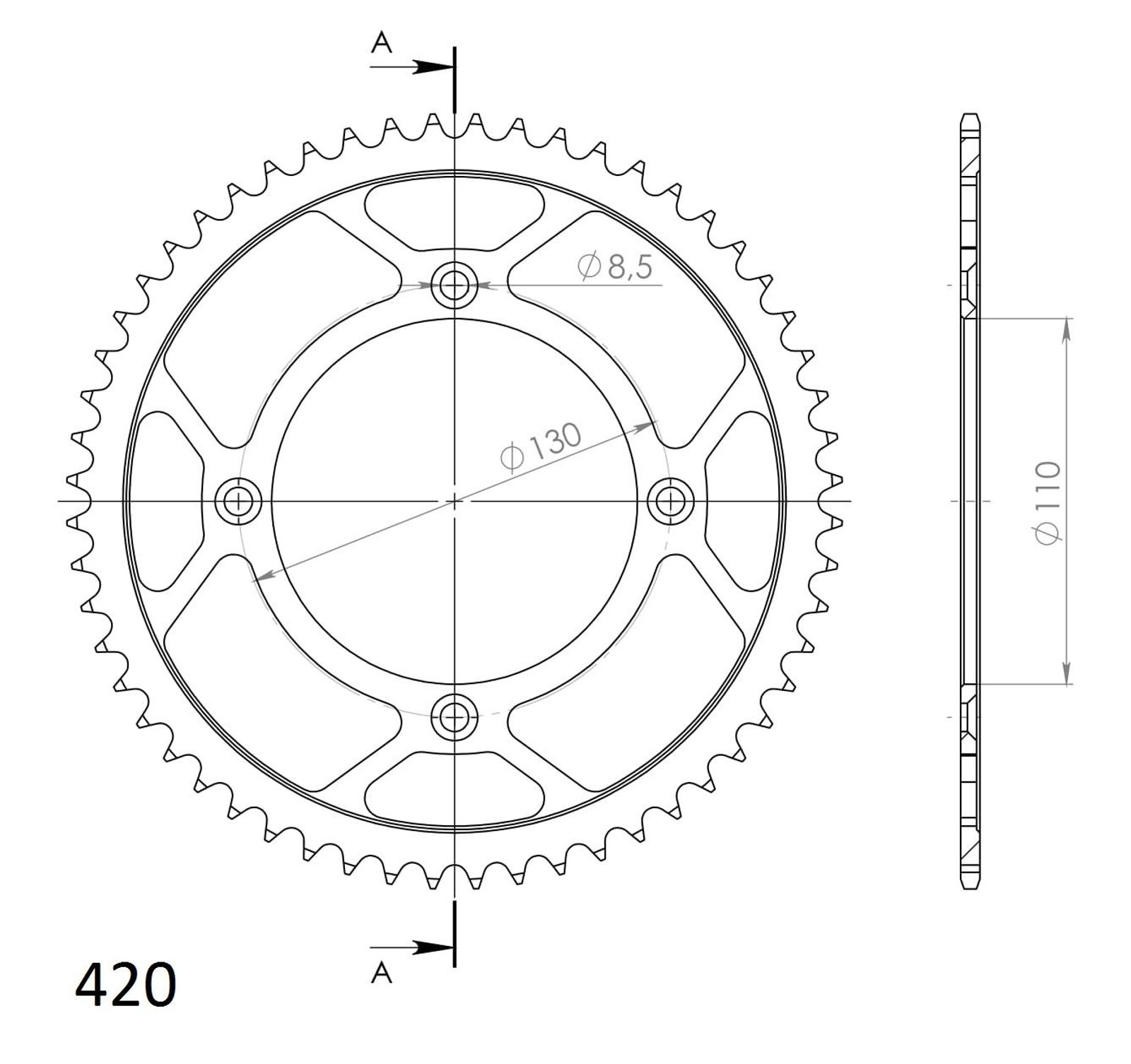 Pevnější zuby = vyšší životnost řetězové sady až o 10%. Rozeta 56z, řetěz 420.