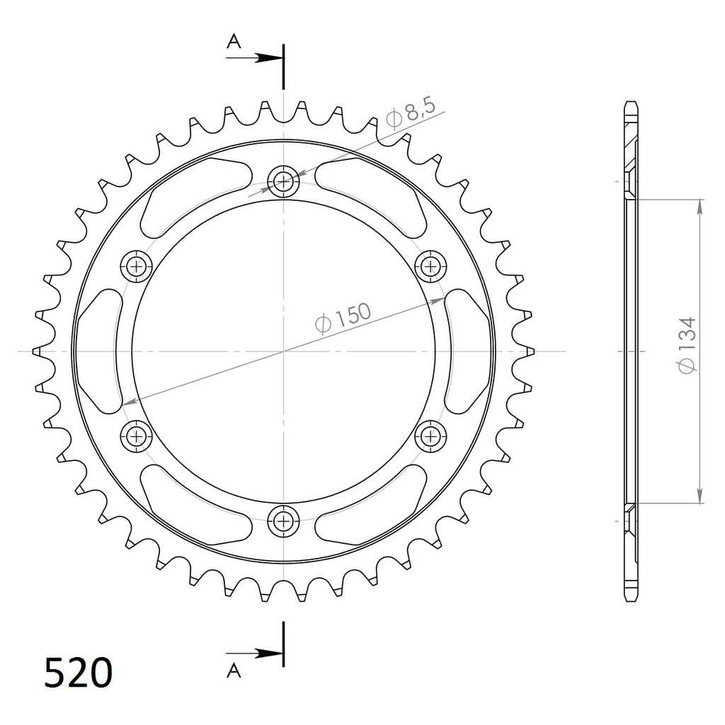 Pevnější zuby = vyšší životnost řetězové sady až o 10%. Rozeta 42z, řetěz 520.