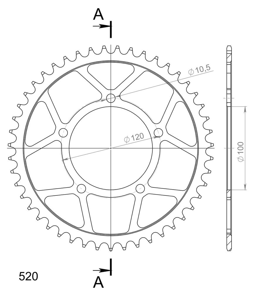 Pevnější zuby = vyšší životnost řetězové sady až o 10%. Rozeta 47z, řetěz 520.
