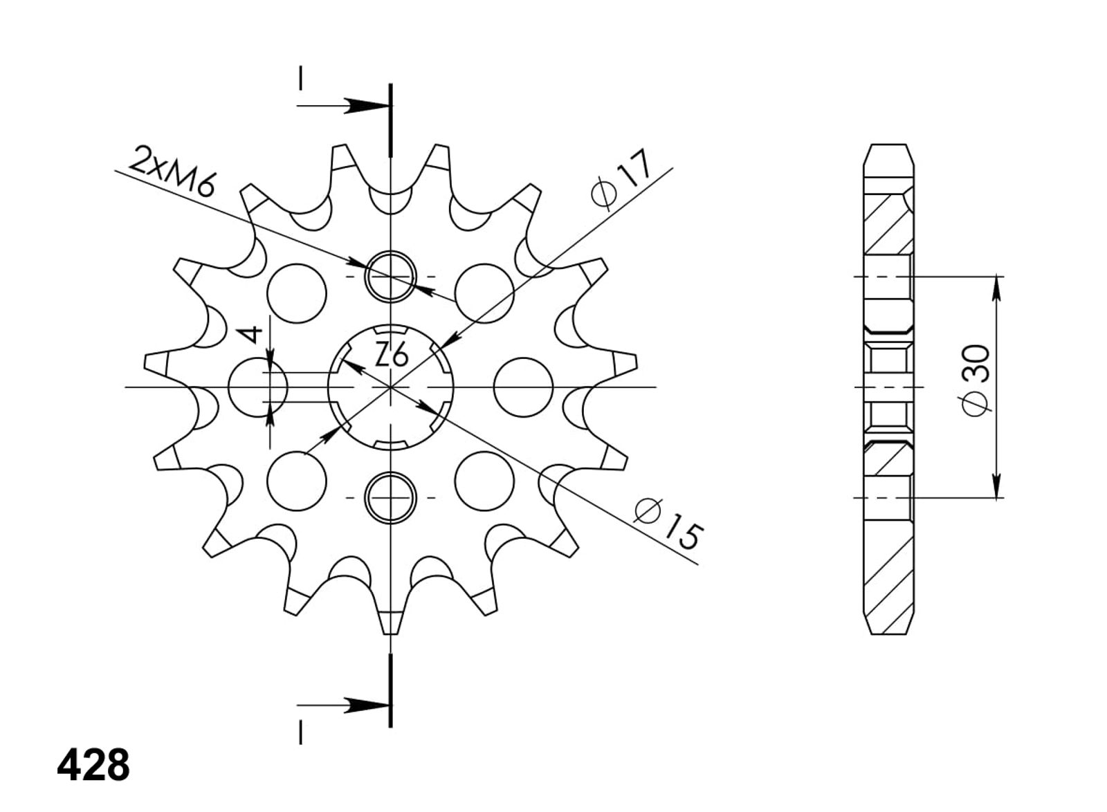 Pevnější zuby = vyšší životnost řetězové sady až o 10%. Kolečko 15z, řetěz 428.
