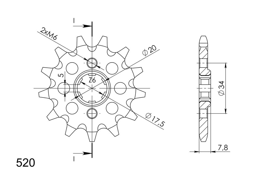 Pevnější zuby = vyšší životnost řetězové sady až o 10%. Kolečko 12z, řetěz 520.