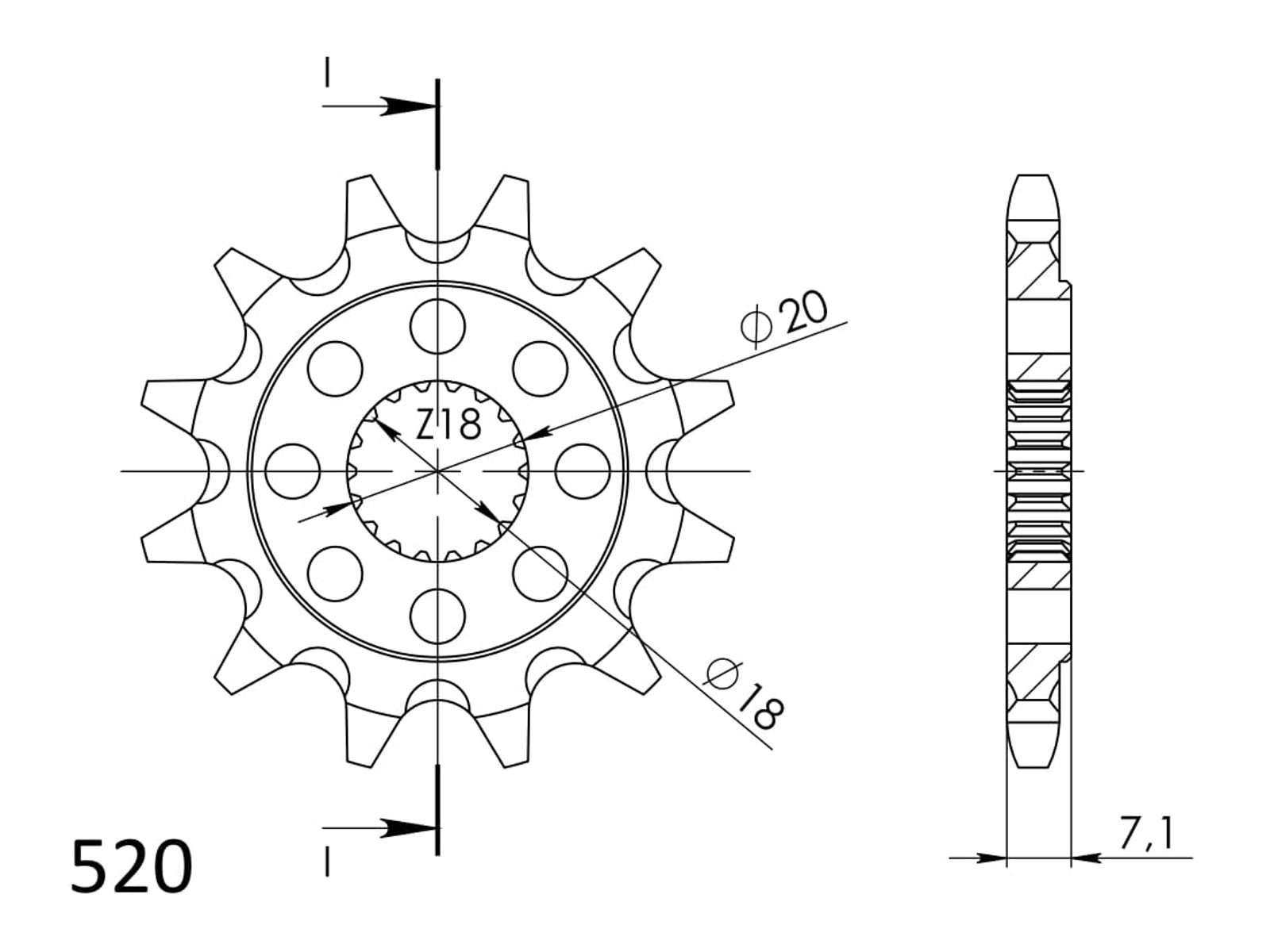 Pevnější zuby = vyšší životnost řetězové sady až o 10%. Kolečko 11z, řetěz 520.