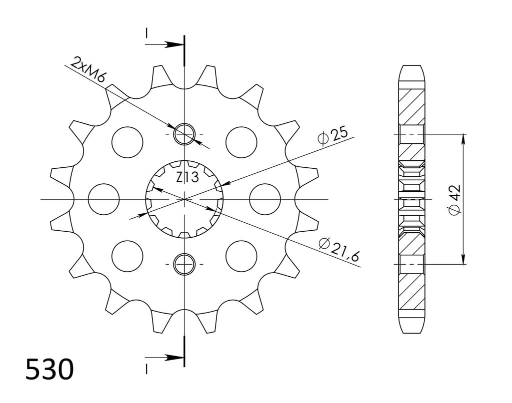 Pevnější zuby = vyšší životnost řetězové sady až o 10%. Kolečko 16z, řetěz 530.