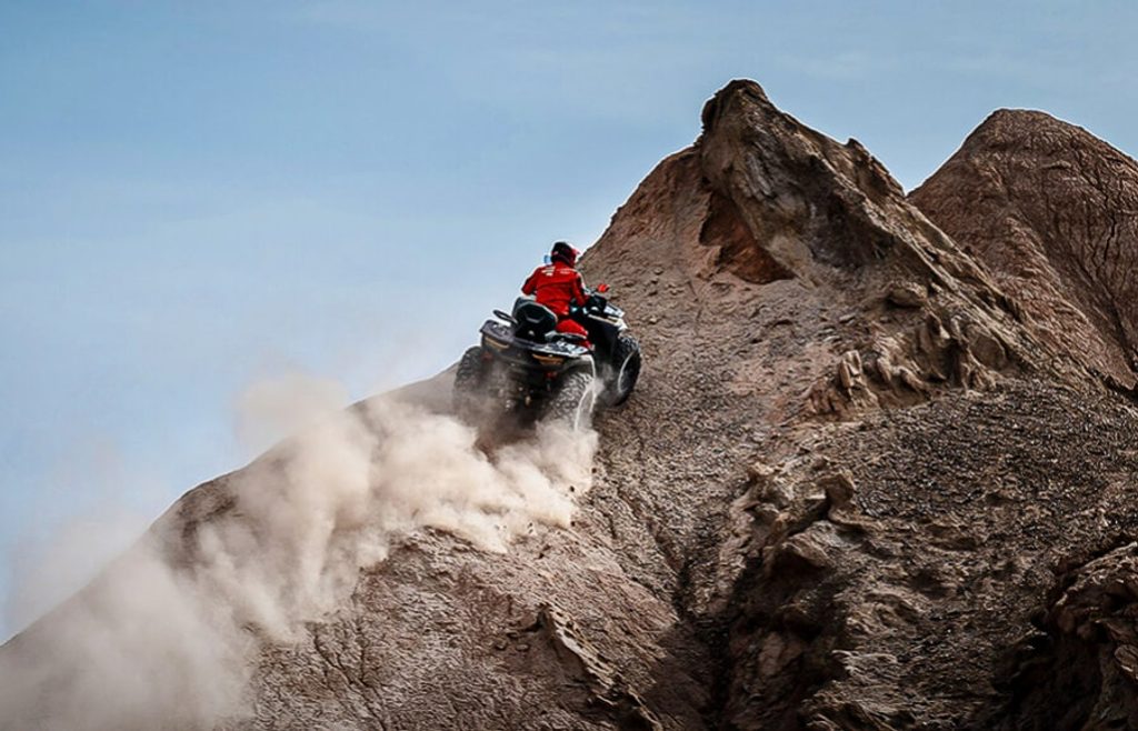 S čtyřtaktním motorem o objemu 999 cm3 s vynikající stoupavostí čtyřkolky si poradíte i s prudším kopcem.