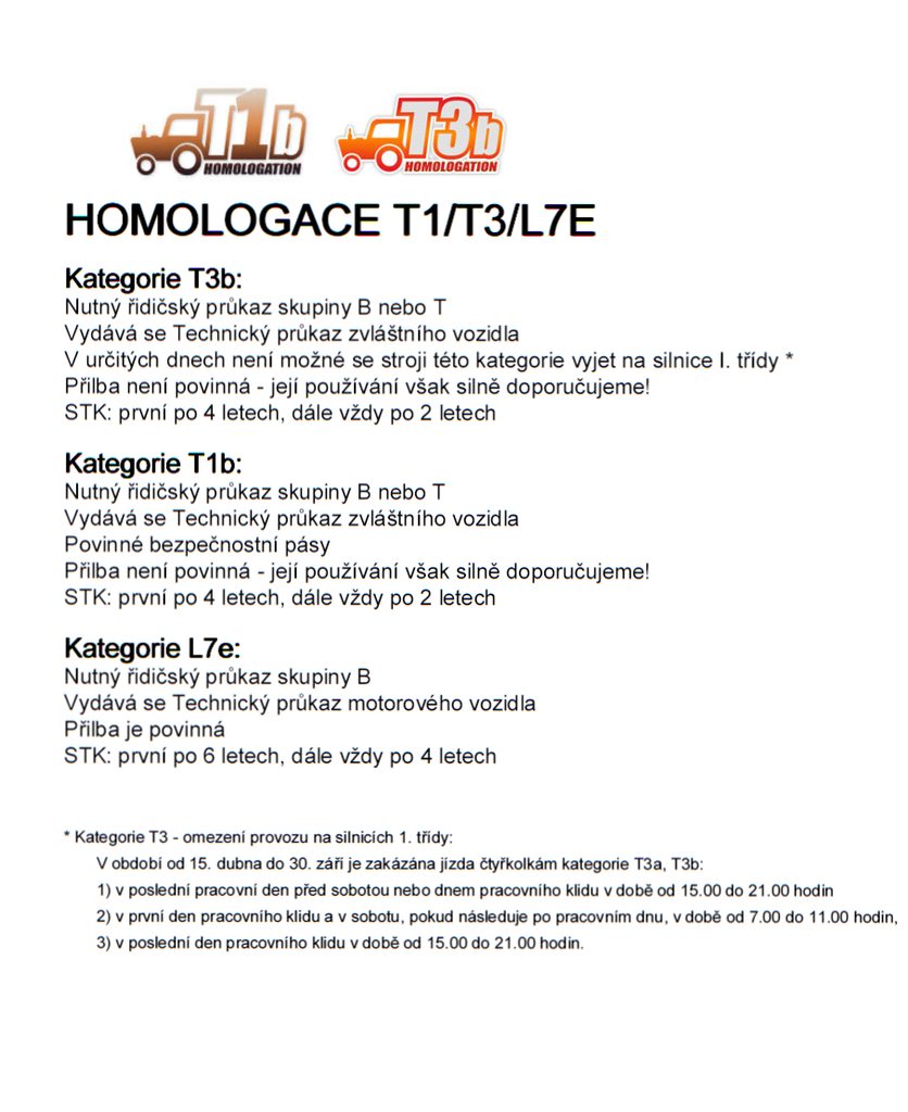 | Homologace pro silniční provoz | Ano - T1B (žlutá reg. značka) |