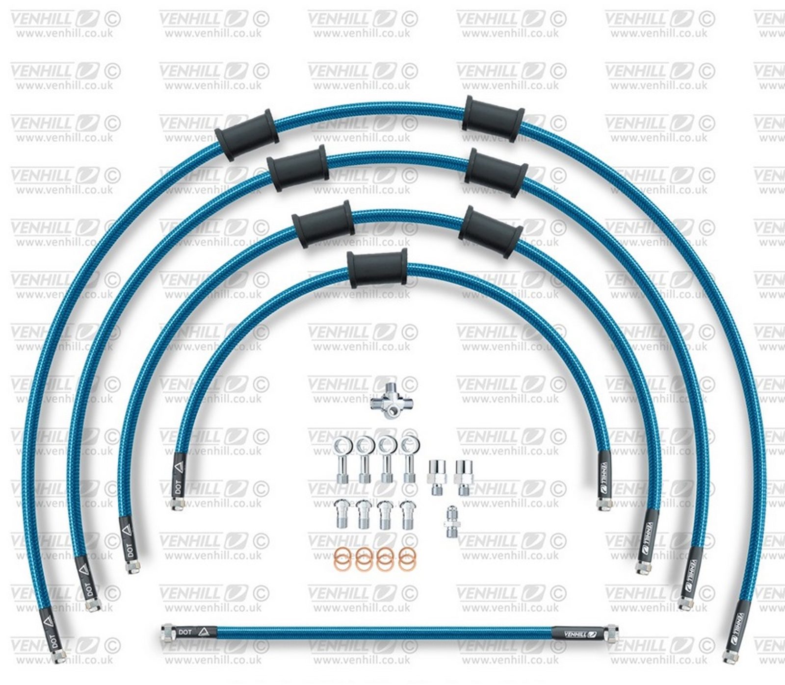 STANDARD Hadice přední brzdy sada Venhill POWERHOSEPLUS KAW-10006F-TB (5hadic v sadě) průhledně modré hadice, chromové koncovky