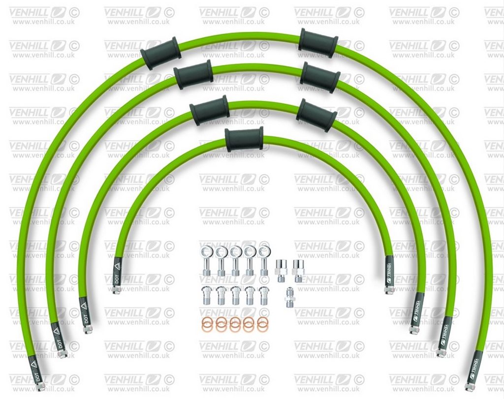 STANDARD Hadice přední brzdy sada Venhill POWERHOSEPLUS KAW-10026F-GR (4 hadice v sadě) zelené hadice, chromové koncovky