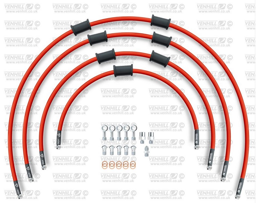 STANDARD Hadice přední brzdy sada Venhill POWERHOSEPLUS KAW-10026F-RD (4 hadice v sadě) červené hadice, chromové koncovky