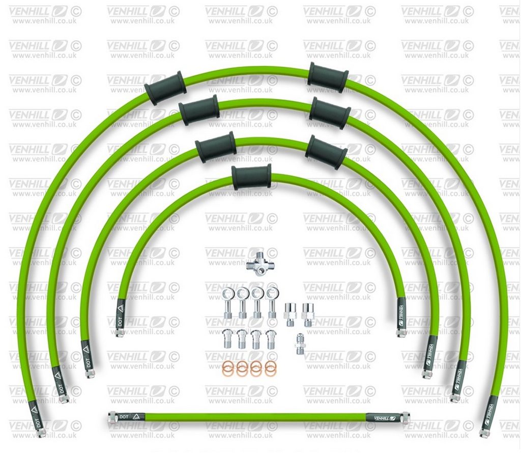 STANDARD Hadice přední brzdy sada Venhill POWERHOSEPLUS KAW-11001F-GR (5hadic v sadě) zelené hadice, chromové koncovky