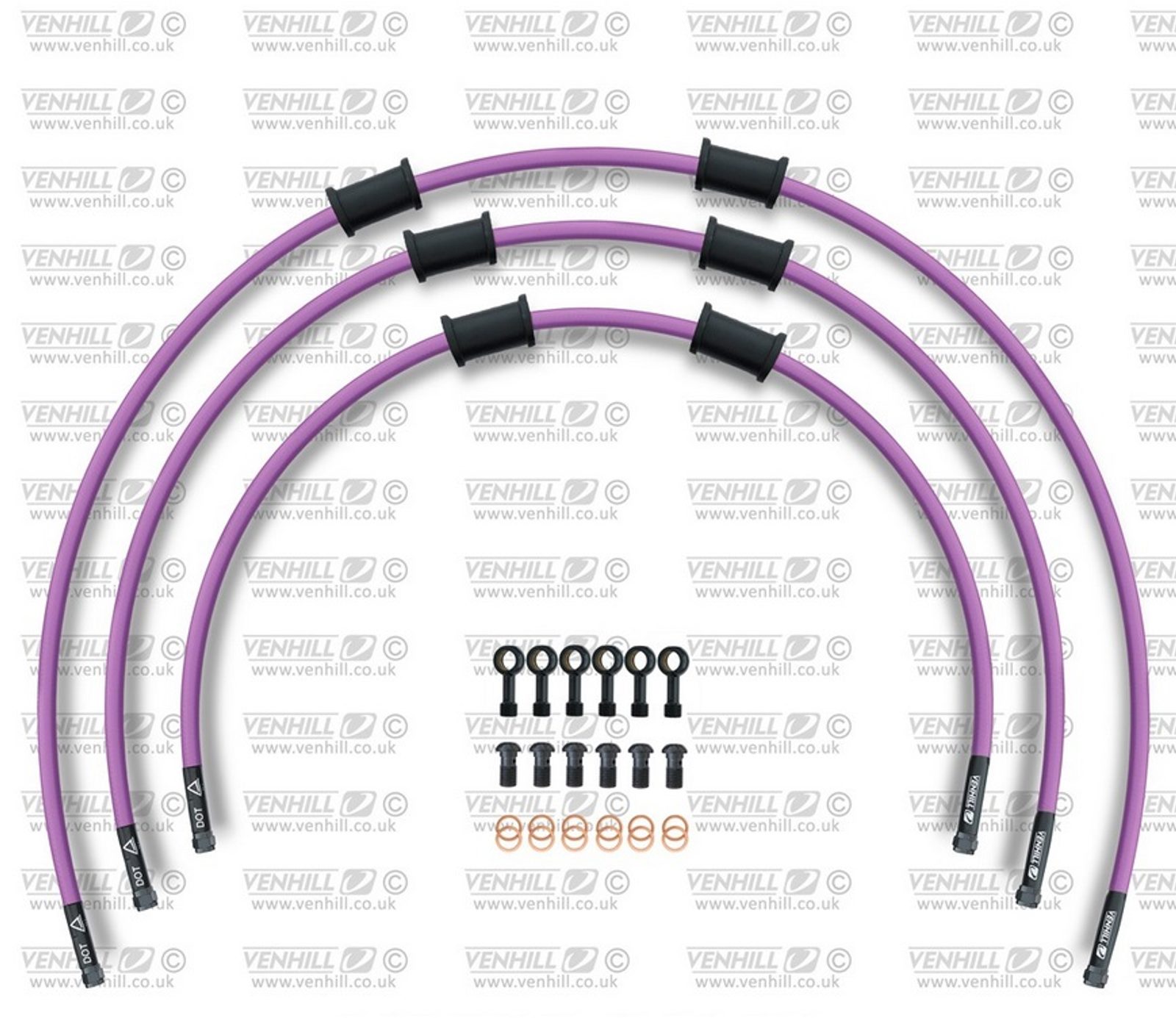 STANDARD Hadice přední brzdy sada Venhill POWERHOSEPLUS KAW-11011FB-PU (3 hadice v sadě) fialové hadice, černé koncovky
