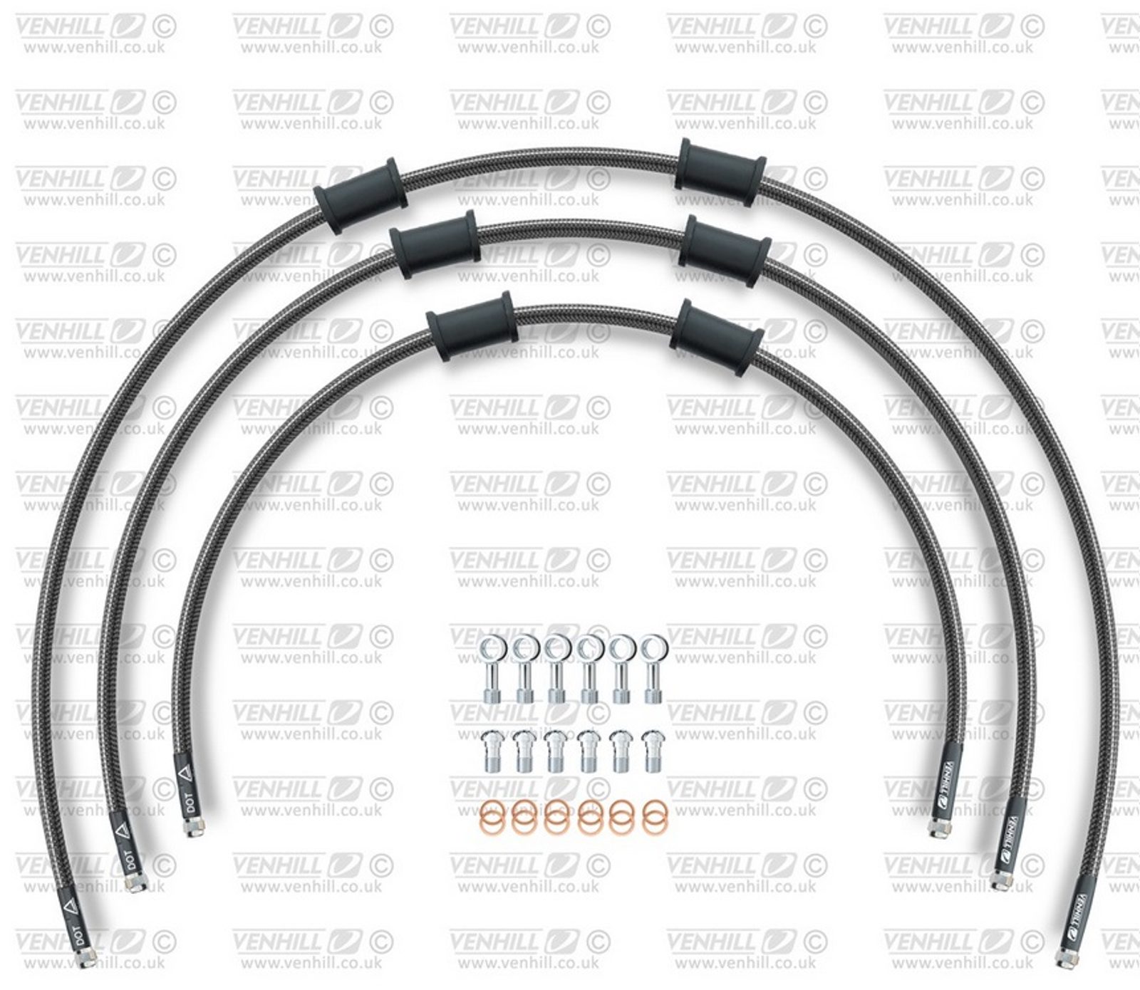 STANDARD Hadice přední brzdy sada Venhill POWERHOSEPLUS KAW-6016FS-CB (3 hadice v sadě) karbonové hadice, nerezové koncovky