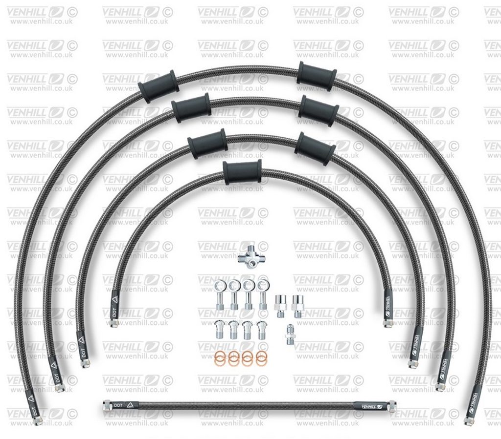 STANDARD Hadice přední brzdy sada Venhill POWERHOSEPLUS SUZ-10001F-CB (5hadic v sadě) karbonové hadice, chromové koncovky