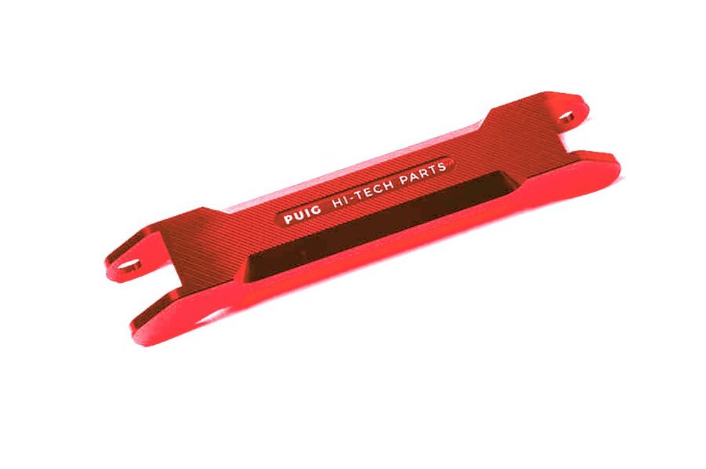 Červená výztuha řídítek je jedním z personalizačních doplňků na YAMAHA MT-07. Jedná se o frézovaný kus hliníku s vysoce kvalitním eloxovaným povrchem, který do ovládacího panelu přináší atraktivní a estetický osobitý dotek.